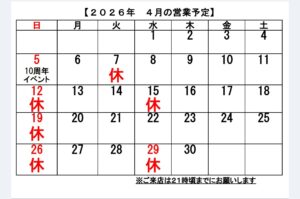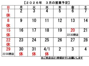 ※ご来店は21時頃までにお願いします🙇状況によっては早く閉店する場合がございます。